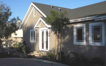 guest parking. Sierra Pacific 9-light windows and French doors immediately
