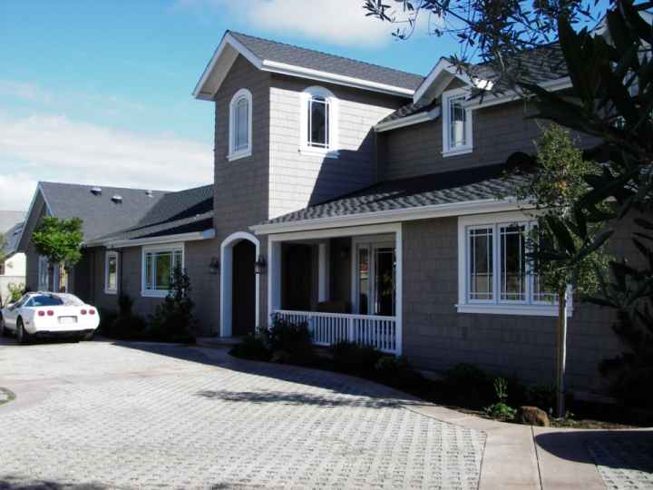 shingles trimmed with bars-rafters and generous casing ant attention to