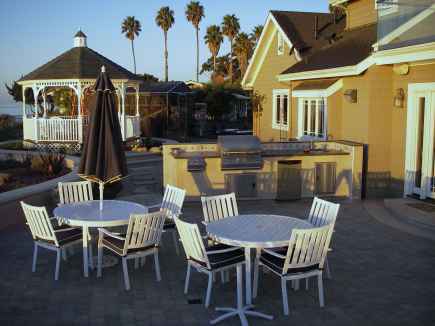 ![]() From the Master Patio, stroll along the path to the seat-wall flanked Main Patio. Its BBQ counter features all stainless steel BBQ, 2-purner gas stove top, refrigerator, and deep sink for icing beverages. There's room to entertain friends in a beautiful setting that tops the best commercial venues Santa Barbara offers. And that's saying a lot. |