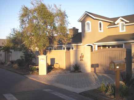 The rear porch is accessible through French doors from the Living Room, Master Bedroom and Bedroom 2. Off the porch is the Master Patio with its seat-wall, therapeutic spa, and cobbled deck.